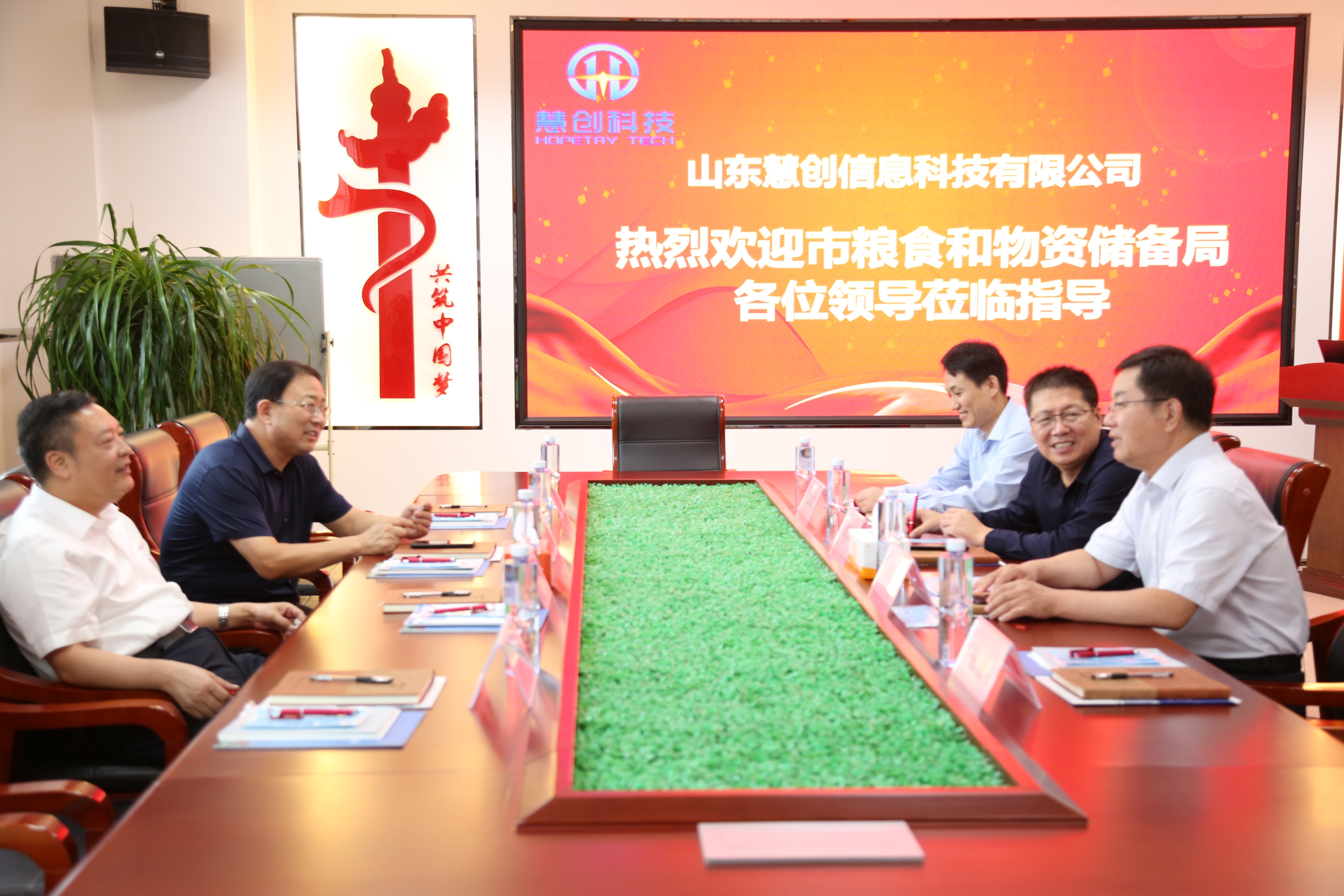 2022年9月27日,臨沂市糧食和物資儲備局黨組書記、局長宋成明;黨組成員、副局長徐景亮及相關領導同志到我司山東慧創信息科技有限公司指導黨建工作。臨沂人才工作集團黨支部書記、總經理高玉彬、市派紅領書記范寶杰等領導同志陪同。座談會上,臨沂人才工作集團黨支部書記、總經理高玉彬就人才集團發展情況及園區黨建工作作出詳細解說。 山東慧創信息科技有限公司董事長王立寶就企業業務、企業黨建、企業